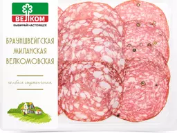Колбаса Велком Брауншвейгская-миланская-велкомовская сырокопченая нарезка, 90г