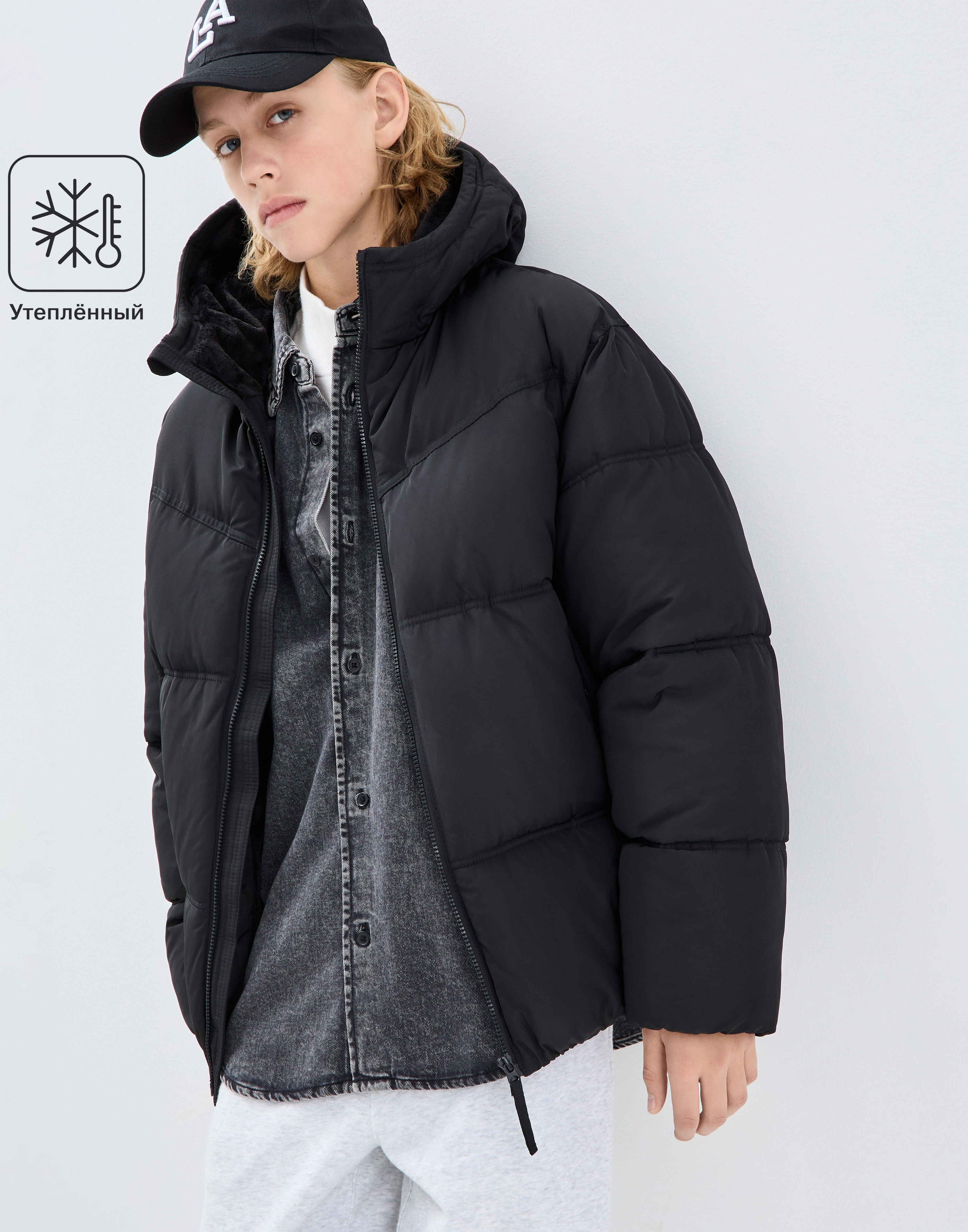 Чёрная утеплённая куртка Bow002375-1
