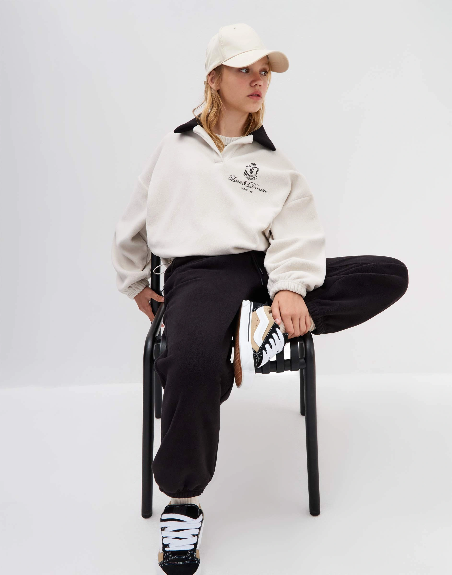 Светло-бежевый свитшот-поло оверсайз из флиса со стопперами Gac025094-1