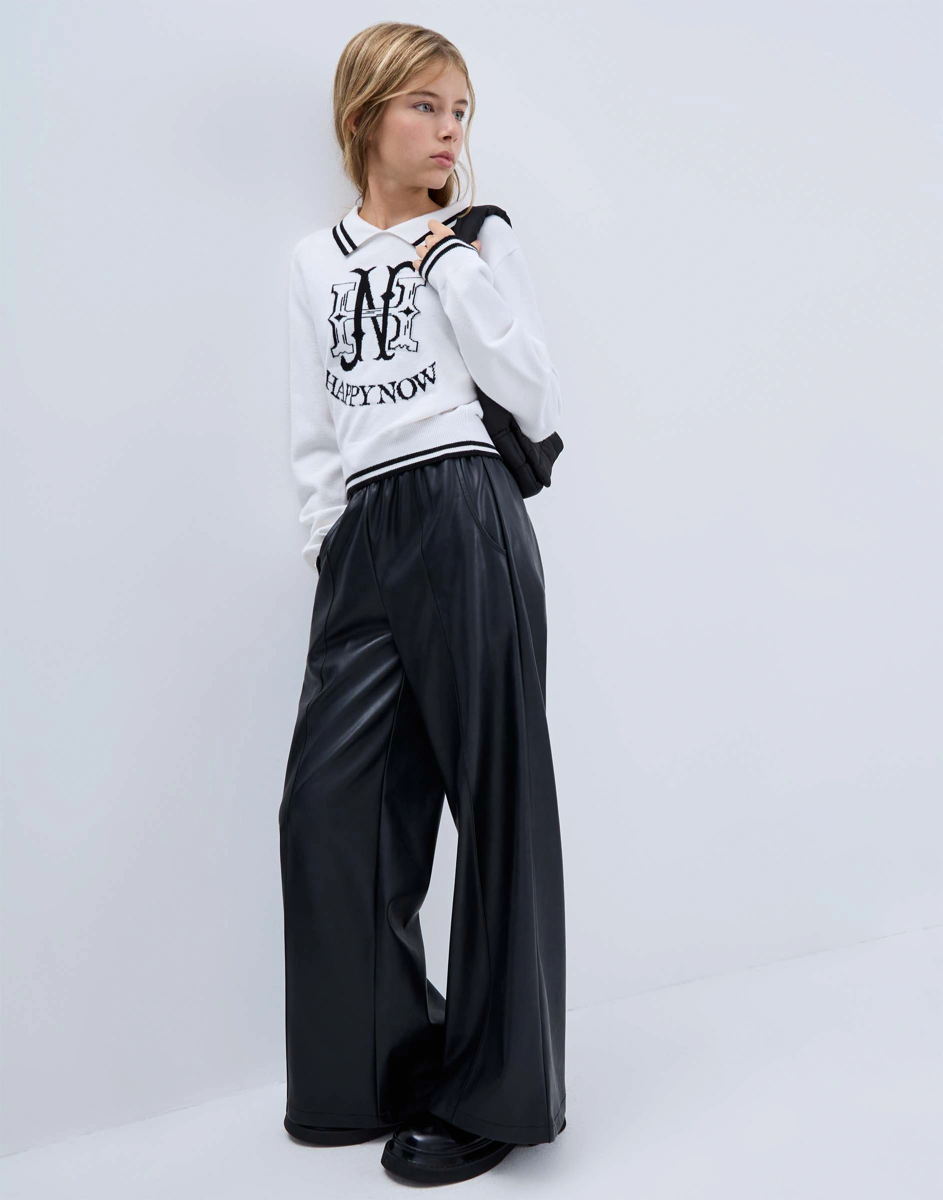 Чёрные брюки Wide leg из искусственной кожи Gpt010820-1
