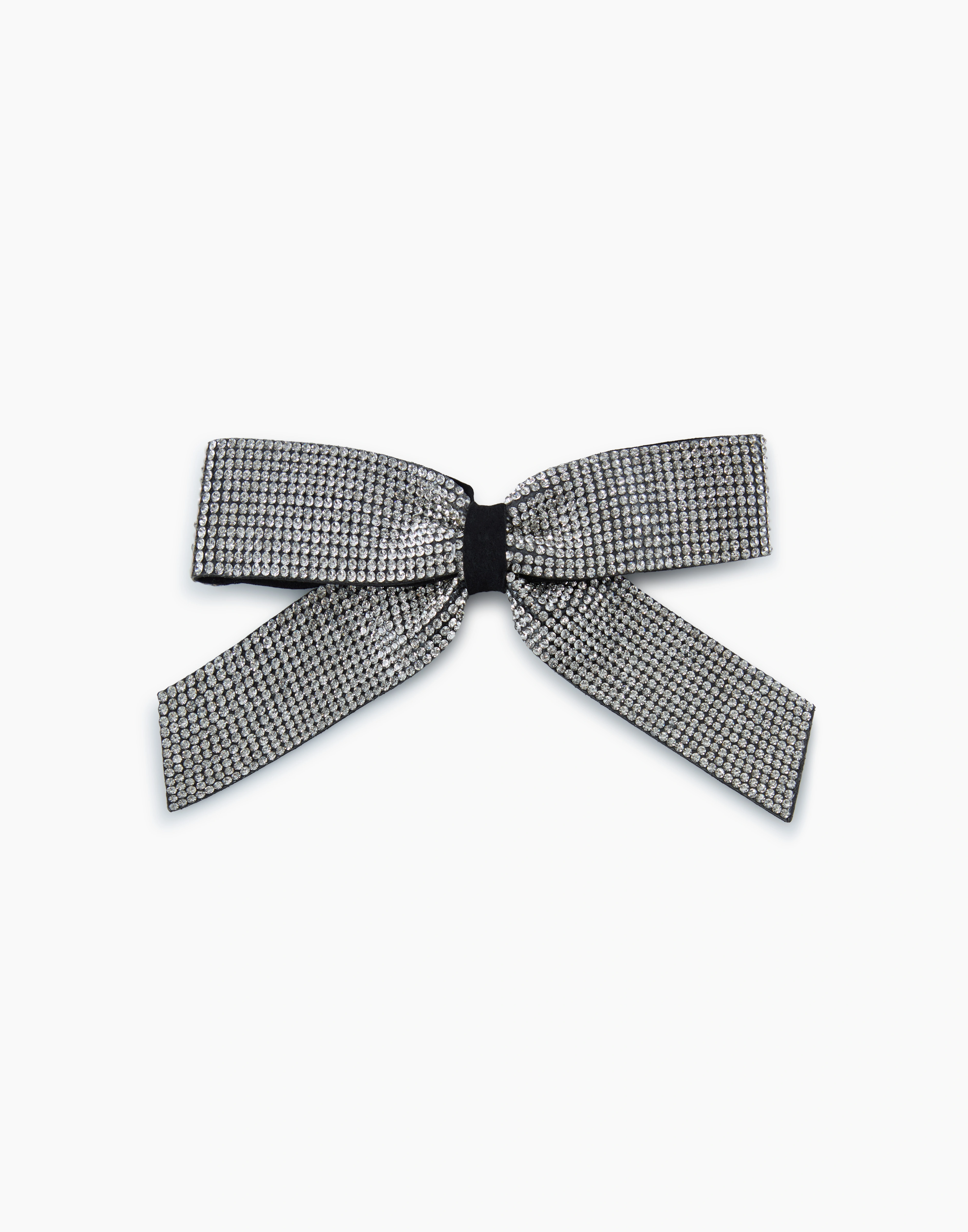 Серебристая заколка для волос с бантиком и стразами Gjw013628-1
