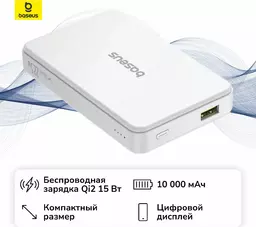 Внешний аккумулятор Baseus Airpow Ii Qi2 Magnetic, 10000 мач Moon White