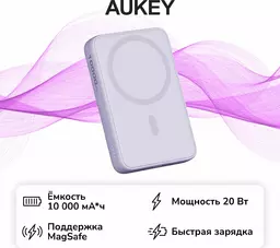 Внешний аккумулятор Aukey Magnetic 10000mah Qi 20W Violet