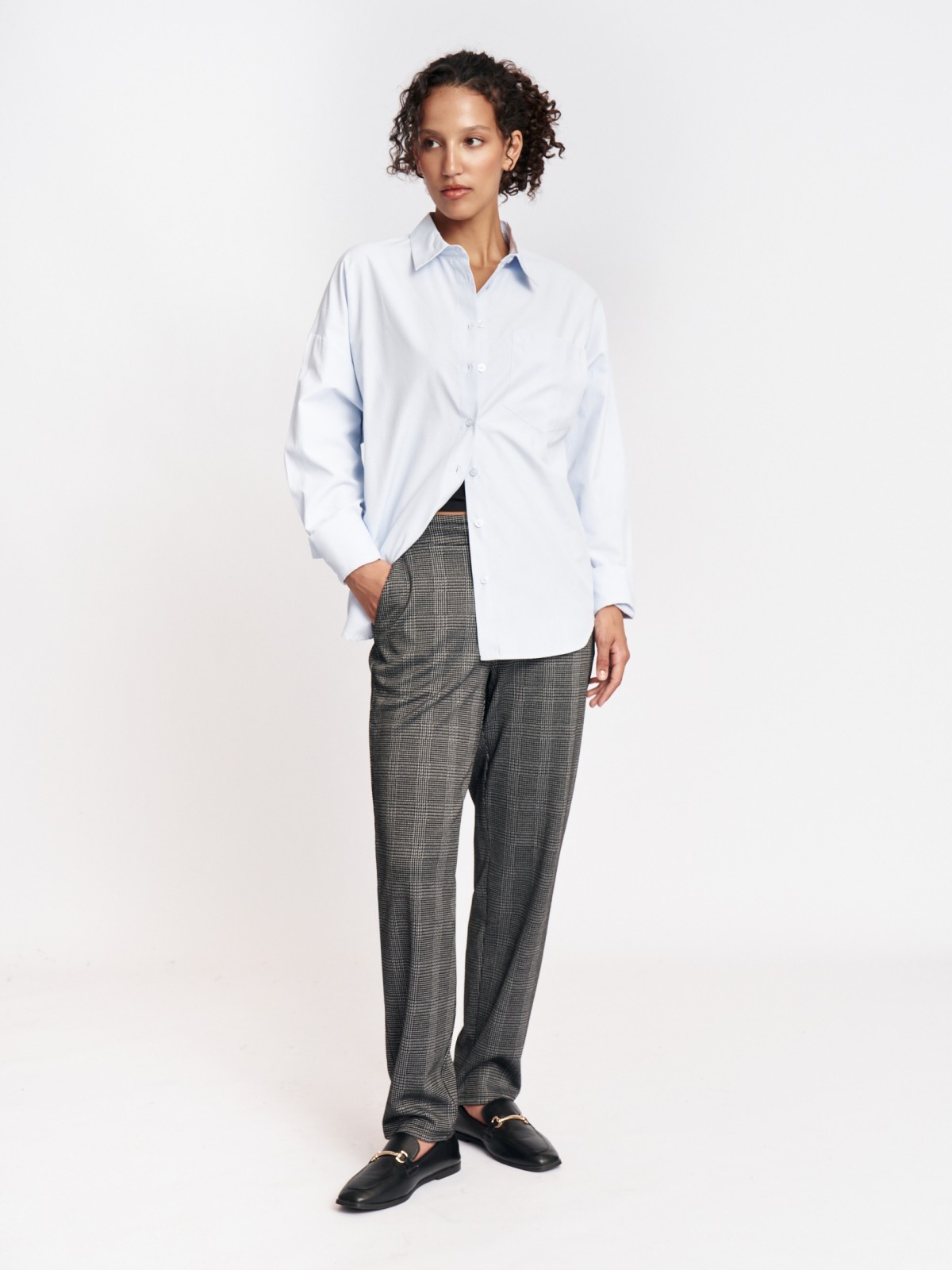 Брюки фасона Carrot на резинке в клетку