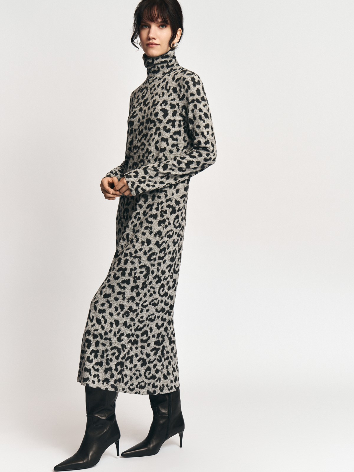 Платье-свитер с леопардовым принтом