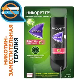 Никоретте спрей для слизистой оболочки полости рта дозированный фруктово-мятный 1мг/доза 13.2мл 150доз