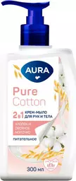Крем-мыло Aura Хлопок и овсяное молочко для рук и тела 2в1, 300мл