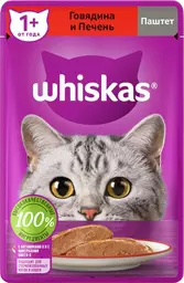 Влажный корм Whiskas для кошек паштет с говядиной и печенью, 75г