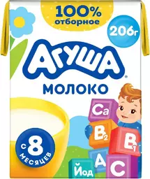 Молоко Агуша обогащенное витаминами А/с/в1/в2 йодом с 8 месяцев 2.5%, 200мл