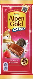 Шоколад молочный Alpen Gold Нежная Клубника с кусочками печенья Орео, 85г