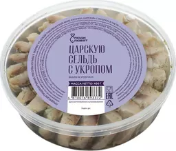 Сельдь Царская с укропом тихоокеанская слабосолёная филе-кусочки в масле Люди Любят, 400г