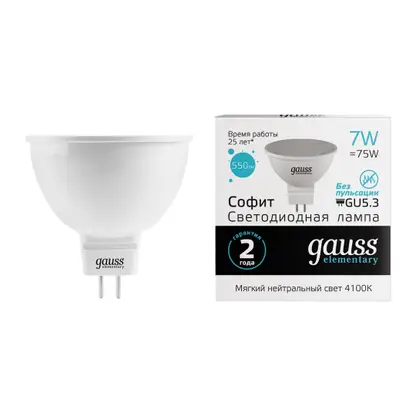 Лампа светодиодная Gauss Elementary спот 7Вт Gu5.3 нейтральный