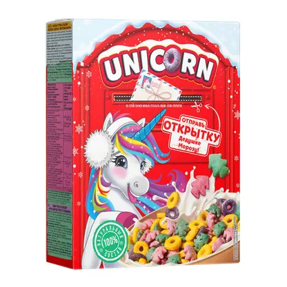 Готовый завтрак Unicorn Радужные колечки с фруктовым вкусом 195г
