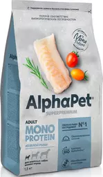 Alphapet Adult Monoprotein Сухой корм для взрослых собак мелких пород, с белой рыбой, 1.5 кг
