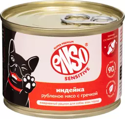 Enso Влажный корм (консервы) для взрослых собак всех пород, с индейкой и гречкой, 190 гр.
