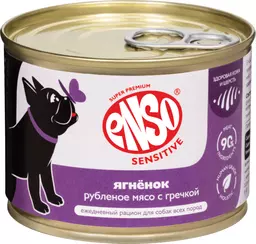 Enso Влажный корм (консервы) для взрослых собак всех пород, с ягненком и гречкой, 190 гр.