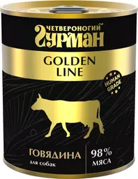 Четвероногий Гурман Golden Line Влажный корм (консервы) для собак, с говядиной, 340 гр.