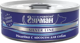 Четвероногий Гурман Silver line Влажный корм (консервы) для собак, с индейкой и лососем, 100 гр.