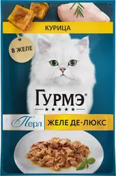 Gourmet Влажный корм (пауч) для взрослых кошек Желе Де-люкс, с курицей в желе, 75 гр.