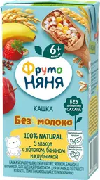 Каша Фрутоняня безмолочная 5 злаков с яблоком бананом и клубникой с 6 месяцев, 200мл