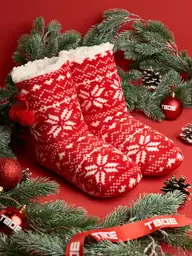 Плюшевые домашние сапожки чуни с орнаментом снежинок 52936