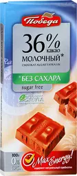 Шоколад Победа вкуса молочный без сахара 36% какао, 100г