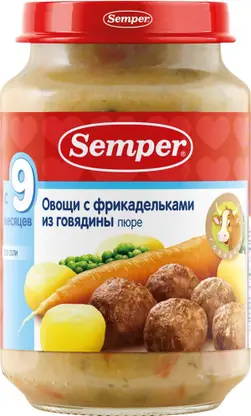 Пюре детское Semper с фрикадельками из говядины с овощами 190г