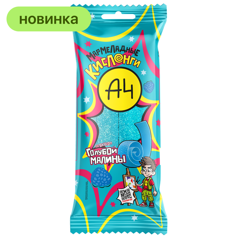 Мармелад жевательный А4 Кислонги со вкус голубой малины, 100 г