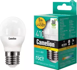 Лампа светодиодная Camelion Е27 тёплый свет, шар, 5Вт