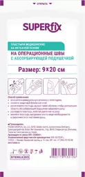 Пластырь на операционные швы Superfix с абсорбирующей подушечкой, 9×20см
