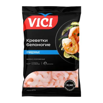 Креветки королевские Премиум очищенные без жилки варено-мороженные Vici 31/40 500г