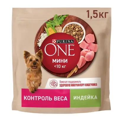 Сухой корм для собак Purina One Mini для здорового веса c индейкой и рисом 1.5кг