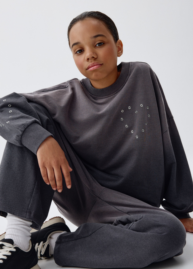 Свитшот оверсайз с люверсами для девочек 5801050411_37