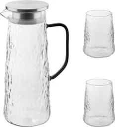 Набор из 3 предметов Aroma: кувшин 1.5 л + 2 стакана по 450 мл из боросиликатного рельефного стекла