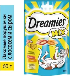 Лакомство для взрослых кошек Dreamies Mix с лососем и сыром 60г
