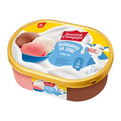 Мороженое Золотой Стандарт Трио пломбир шоколад-вкус сливок-вкус клубники 475г