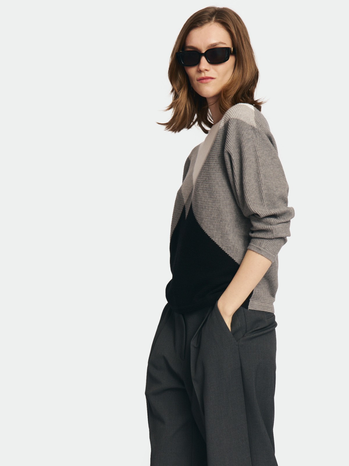 Джемпер в стиле колор-блок с рукавом летучая мышь