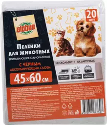 Пеленки для животных Глобус с черным абсорбирующим слоем 45×60см, 20шт.