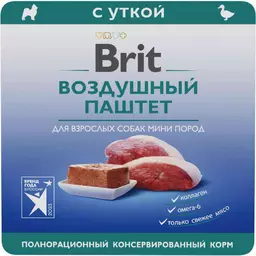 Влажный корм для собак мини пород Brit утка воздушный паштет, 100г