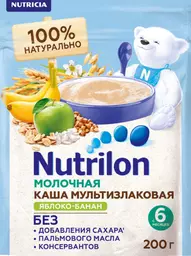 Каша мультизлаковая молочная Nutrilon Яблоко-банан, с 6 месяцев, 200г