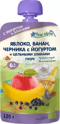 Пюре Fleur Alpine Яблоко, банан, черника с йогуртом, с 6 месяцев, 120г
