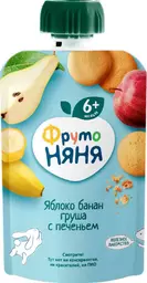 Пюре Фрутоняня Яблоко, банан, груша с печеньем, с 6 месяцев, 90г