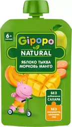 Пюре детское фруктовое Gipopo яблоко-тыква-морковь-манго с 6 месяцев, 90г