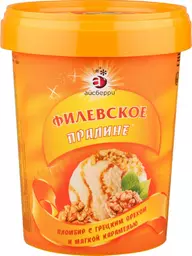 Мороженое пломбир Айсберри Филёвское пралине с грецким орехом и мягкой карамелью, 550г