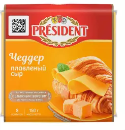 Сыр плавленый President Чеддер 45%, ломтики, 150г