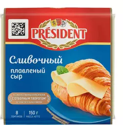 Сыр плавленый President сливочный 40%, ломтики, 150г