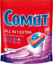 Средство Сомат Всё-в-1 Экстра для мытья посуды в посудомоечных машинах, 50шт