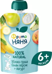 Пюре Фрутоняня яблоко-груша-банан-персик с йогуртом с 6 месяцев, 90г