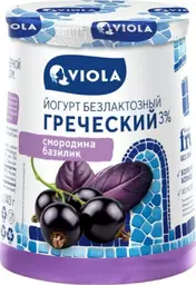 Йогурт Viola Греческий Free безлактозный с черной смородиной и базиликом 3%, 140г