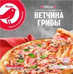 Пицца Ашан Красная птица с ветчиной и грибами замороженная, 335 г